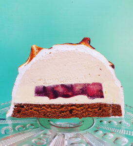 SPICY HOT CHOCOLATE BAKED ALASKA SLICE.